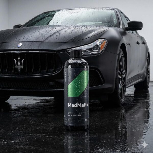 CARPRO MadMatte – tai pažangus silicio (SiO₂) pagrindu sukurtas purškiamas sealantas, skirtas matiniams ir satino dažams, PPF plėvelėms, vinilams bei ratlankiams. Jis apsaugo paviršių nekeisdamas jo tekstūros ar blizgesio, bet subtiliai išryškina spalvos gylį ir sodrumą.
