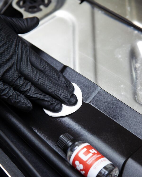 C4 paprasčiausiai sugrąžina juodumą jūsų plastikinėms detalėms. Dar geriau – jei užtepsite C4 ant naujo plastiko, kol šis dar nepradėjo blukti, produktas padės ilgiau išlaikyti šviežią, juodą išvaizdą ir apsaugos nuo pavirtimo į įprastą pilką atspalvį.