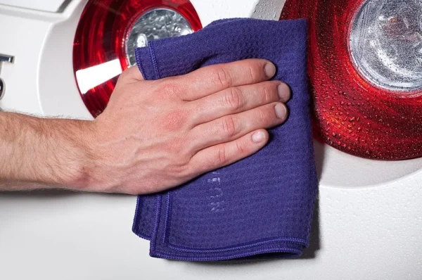 Dėl specialios waffle (vaflio) struktūros šluostė efektyviai sugeria vandenį ir nepalieka dryžių.