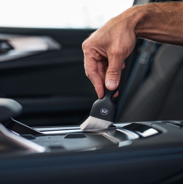 K2 FLATO PRO – kompaktiškas detailing’o valymo šepetys su aksominiais šereliais.