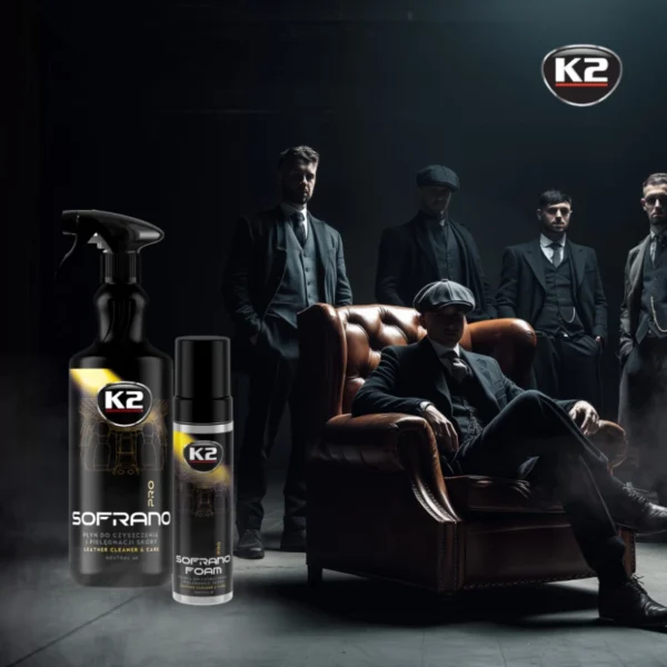 „K2 Sofrano Foam Pro“ – tai išskirtinės natūralios odos valymo ir priežiūros putos tiems, kurie nesileidžia į kompromisus. Sukurtos profesionalams ir aukštos kokybės natūralių medžiagų mėgėjams. Idealiai tinka valyti odinius automobilių apmušalus, laivus, baldus ir interjero elementus, kurie nusipelno kruopščios ir saugios priežiūros. Neutralaus pH sudėtis efektyviai pašalina nešvarumus ir riebaluotus likučius. Neišdžiūvusi oda. Po valymo atkuriamas natūralus odos minkštumas. Elastingumas ir matinė išvaizda – išnyksta ir nešvarumai, ir nepageidaujamas blizgesys. Spalva tampa gilesnė ir intensyvesnė. Putų dozatorius užtikrina tankias ir stabilias putas – tai leidžia tiksliai užtepti neperšlapinant paviršiaus. Valymas yra itin paprastas – priemonė nepažeidžia paviršių. Nepalieka dryžių ar nemalonaus kvapo. 200 ml buteliukas yra labai ekonomiškas ir jo pakanka keliems panaudojimams. Geriausiems rezultatams pasiekti rekomenduojame naudoti „K2 Auron Soft Brush“ minkštą odos šepet.