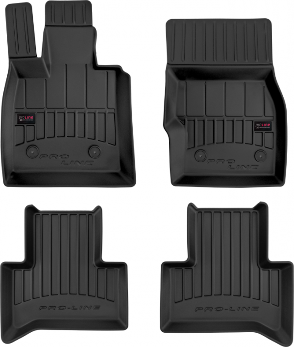 Guminiai ProLine 3D kilimėliai: (aukštos kokybės plastiko, gumos mišinys / TPE, komplektas – 4vnt., juodi, krašto aukštis 7 cm, montavimo būdas – spaustukai).
