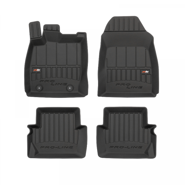 Guminiai ProLine 3D kilimėliai: (aukštos kokybės plastiko, gumos mišinys / TPE, komplektas – 4vnt., juodi, krašto aukštis 7 cm, montavimo būdas – spaustukai).