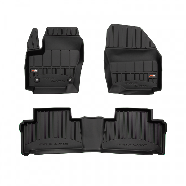 Guminiai ProLine 3D kilimėliai: (aukštos kokybės plastiko, gumos mišinys / TPE, komplektas – 4vnt., juodi, krašto aukštis 7 cm, montavimo būdas – spaustukai).