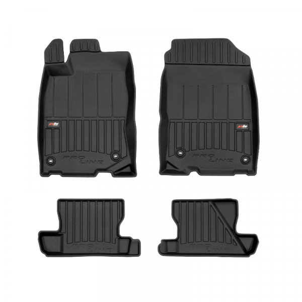 Guminiai ProLine 3D kilimėliai: (aukštos kokybės plastiko, gumos mišinys / TPE, komplektas – 4vnt., juodi, krašto aukštis 7 cm, montavimo būdas – spaustukai).