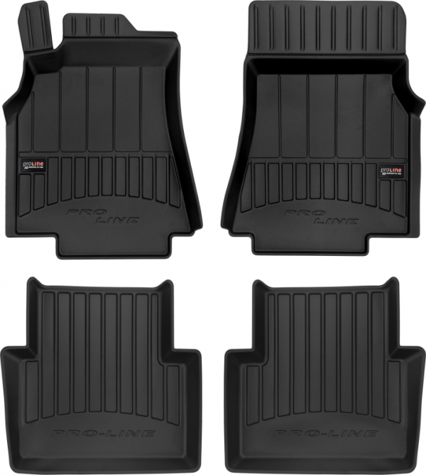 Guminiai ProLine 3D kilimėliai: (aukštos kokybės plastiko, gumos mišinys / TPE, komplektas – 4vnt., juodi, krašto aukštis 7 cm, montavimo būdas – spaustukai).