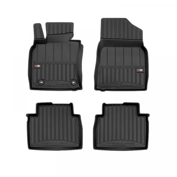 Guminiai ProLine 3D kilimėliai: (aukštos kokybės plastiko, gumos mišinys / TPE, komplektas – 4vnt., juodi, krašto aukštis 7 cm, montavimo būdas – spaustukai).