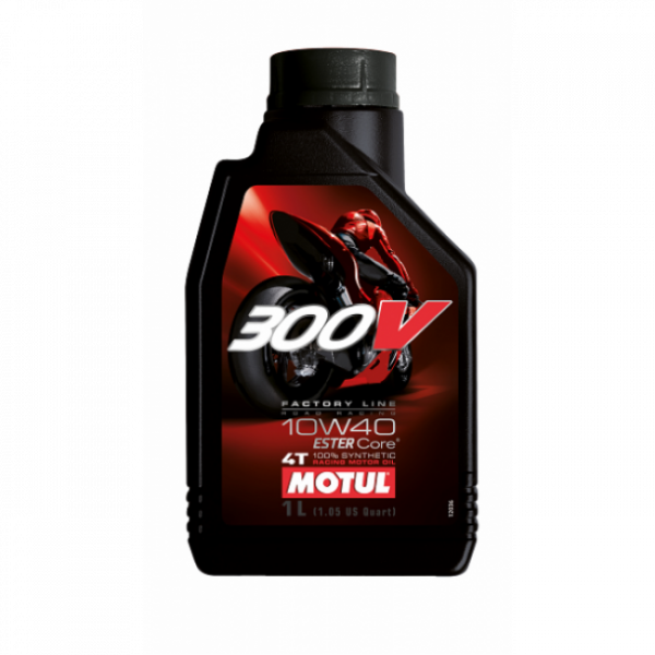 Motul 300V Factory Line 10w-40 – itin aukštos kokybės alyva skirta naujausiems keturtakčių motociklų varikliams tiek su sausa tiek su “šlapia” sankaba. Išbandyta įvairių motociklų kategorijų varžybose, kur buvo pasiekti puikūs rezultatai. Tinka įvairioms sąlygoms :žiedui, miestui, bekelei.