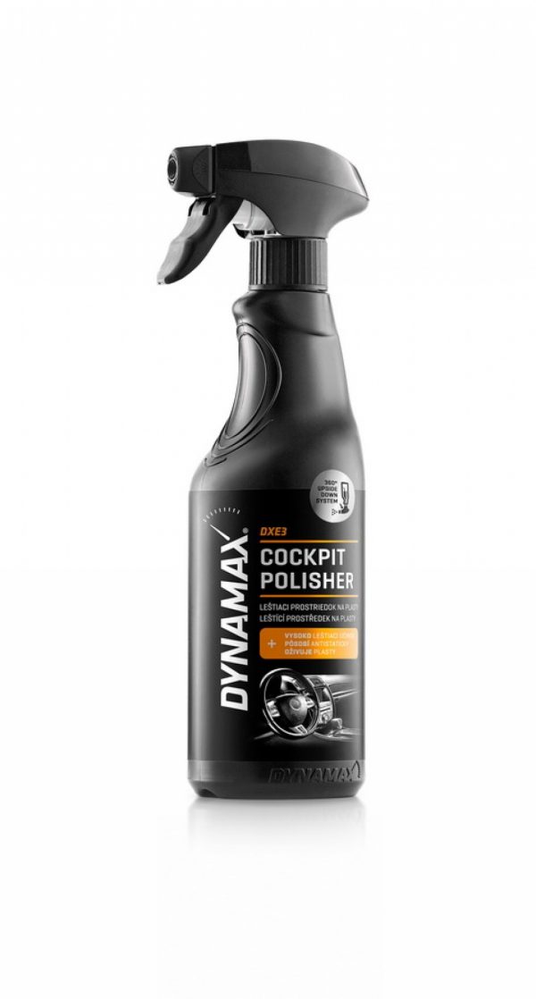 DYNAMAX COCKPIT POLISHER – unikalus poliravimo skystis pagamintas vaško ir silikono pagrindu. Tinkamas naudoti ant įvairių paviršių: plastiko, medžio gumos, marmuro. Taip pat turi anti-static efektą kuris mažina dulkių sukibimą ant paviršių. Naudojimas: užpurškite ant švaraus skudurėlio ir švelniai trinkite paviršių kol šis pasidenks poliroliu.