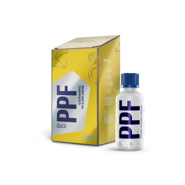 Unikali keraminė danga apsauginei dažų plėvelei (PPF). Q² PPF EVO – labai lengvai dengiama, lanksti, vieno sluoksnio danga, tinkanti visų tipų PPF ir vinilo plėvelėms. Ji sukurta prailginti savaiminio nusivalymo efektą ir maksimaliai sustiprinti hidrofobines savybes, išlaikant aukštą ilgaamžiškumą.