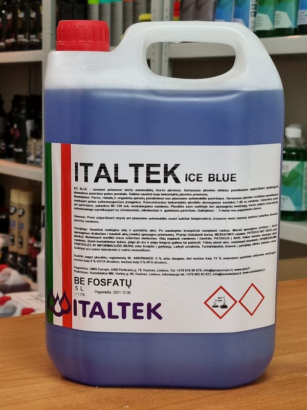 ITALTEK ICE BLUE – komercinio arba sunkiojo transporto aktyvios bekontakčio plovimo putos, šarminė priemonė, skirta automobilių išorės plovimui, apipurškiant (padengiant) plaunamus paviršius putų pavidalu. Geriausias rezultatas pasiekiamas naudojant putas suformuojančius įrenginius. Koncentruotas bekontaktis ploviklis dozuojamas santykiu 1:40 su vandeniu. Užpurškus putas ant paviršiaus, palaukus kol aktyvios dalelės pradės veikti po 90-120 sek. nuskalaujama vandeniu. Ploviklis savo sudėtyje turi apsauginių medžiagų, kurios padaro koncentratą nekenksmingu sąveikaujant su chromuotais, nikeliuotais ir guminiais paviršiais.