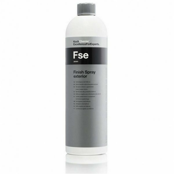 Koch Chemie FSE Finish Spray Exterior tai išorės paviršių priežiūros priemonė, kurioje esantys valantys komponentai padeda susidoroti su kenksmingais mineralų likučiais pvz. išdžiūvusio vandens dėmės. Reguliarus valiklio naudojimas padės užtikrinti geriausias lako ar apsauginio sluoksnio savybes ilgą laiką.