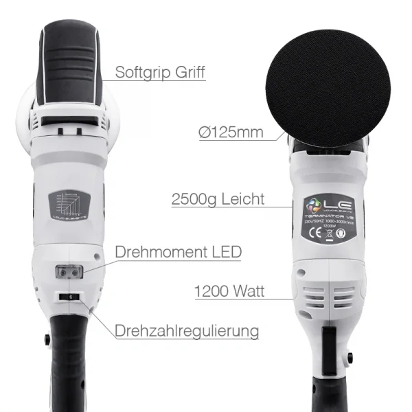 Liquid Elements Terminator V2 rotacinė poliravimo mašinėlė. Profesionalus poliravimo įrankis su rotaciniu veikimo principu ir galingu 1200W varikliu.