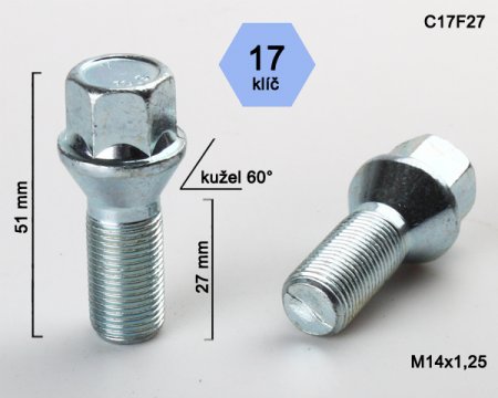 M14x1.25x27mm Bimecc varžtas (konusas)