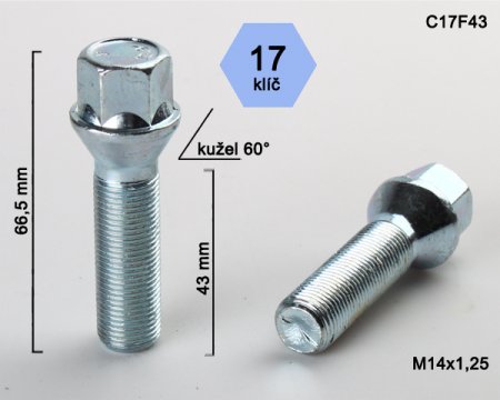 M14x1.25x43mm Bimecc varžtas (konusas)