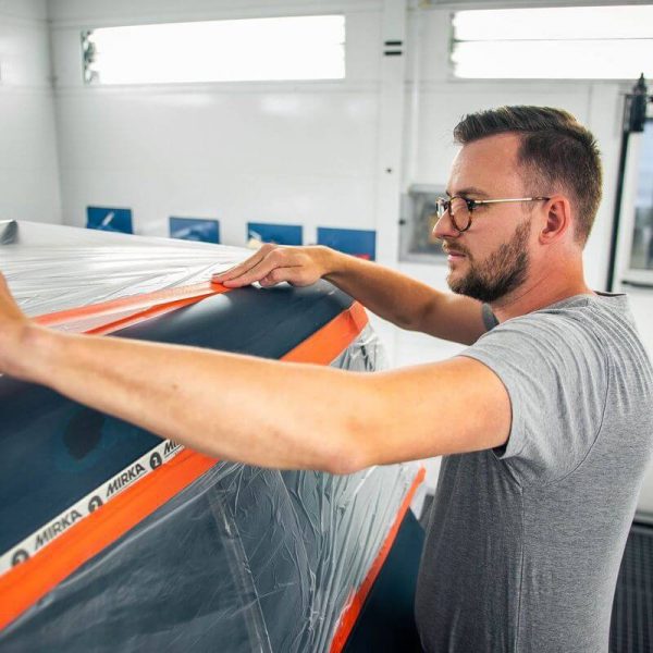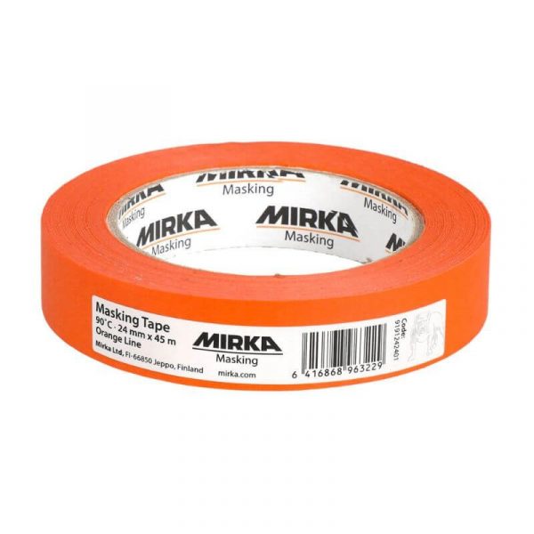Mirka Orange Line (45 m) – aukštos kokybės apsauginė dažymo juosta automobilių remonto darbams. Atlaiko 90 °C temperatūros naudojimą 30 minučių.