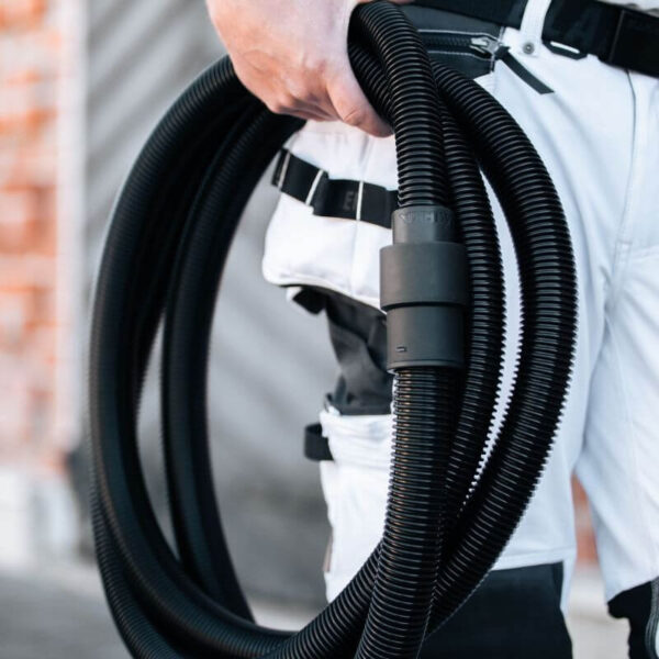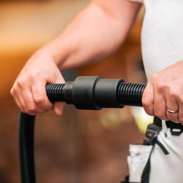 Lanksti siurbimo žarna, jungianti šlifuoklį ir dulkių siurblį. Atkreipkite dėmesį, kad ši žarna yra kūgio formos. Kūgio formos dulkių siurblio žarnos privalumas yra tai, kad pagerina dulkių siurbimą.