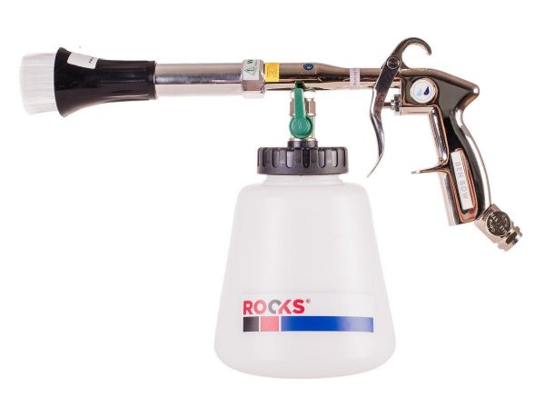 Šis ROOKS TORNADO PRO-TURBO pistoletas didele oro srauto pagalba valo automobilio interjero ir eksterjero elementus, tokius kaip salono plastikai, kilimai, apmušalai, kilimėliai, variklio skyrius, tarpduriai. Prietaisas turi chemijos talpą, kuri esant slėgiui perduodama per besisukantį antgalį ir taip sukuriamas tornado efektas, chemijos valikliui suteikiama papildoma kinetinė jėga ir valymo procesas tampa itin greitas.