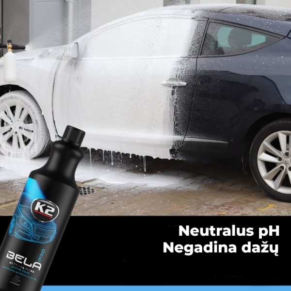 K2 BELA PRO 1 L – tai priemonė, kuria galima pašalinti pačius gausiausius nešvarumus. Naudojant priemonę paviršius yra padengiamas storu ir puriu aktyviųjų putų sluoksniu. Nors priemonė yra koncentruota, tačiau dėl esamo neutralaus pH ji yra saugi ir nepažeidžia vaškų bei keraminių dangų, bet įveikia net pačius sunkiausius nešvarumus.