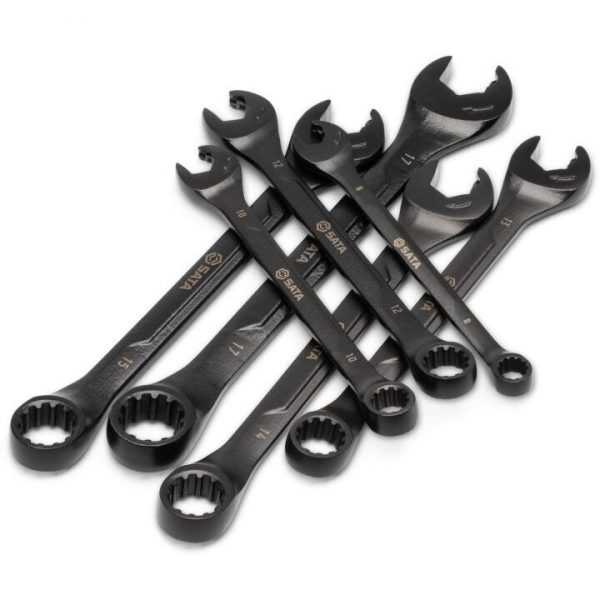 SATA KOMB. SPLINE RAKTŲ SU ATVIRA TERKŠLE RINKINYS 7VNT. (8-17MM)(JUODI)