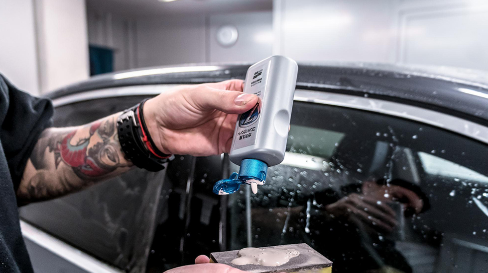 Kiekviena Glass Compound Z pakuotė turi aplikatoriaus kempinę, kuria galite lengvai užtepti gaminį ant stiklo paviršiaus.