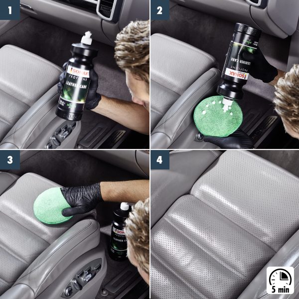 - Pirmiausia pašalinkite purvą siurbliu ir nuvalykite paviršių odos valikliu.
