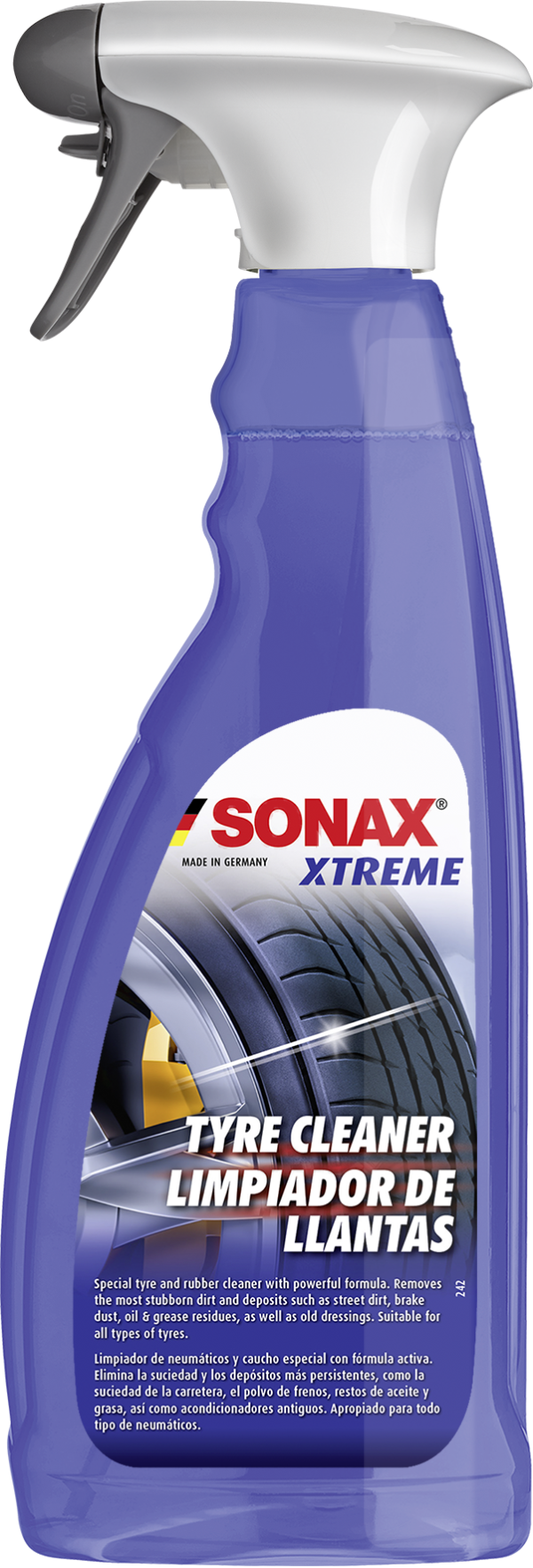 SONAX Xtreme padangų, gumų valiklis. Tai profesionalus automobilių padangų, gumų valiklis. Specialiai sukurtas pašalinti nešvarumus bei įvairias kelio apnašas nuo jūsų padangų, taip pat bet kokią seną silikono arba naftos pagrindo padangų juodinimo priemonę. Dėl ypatingai gausaus putojimo jis greitai ir efektyviai ištirpdo ir pašalina padangų protektoriuje esančius įsisenėjusius nešvarumus, stabdžių dulkes, nusidėvėjimo žymes. Todėl padangos atrodys kaip naujos. Norėdami naudoti produktą, tiesiog užpurkškite jį ant padangų, šepetėliu nušveiskite paviršių ir tada nuplaukite vandeniu iškeltą purvą. Šis procesas yra paprastas ir lengvas, o purvui ir nešvarumams pašalinti pakanka vos kelių minučių.