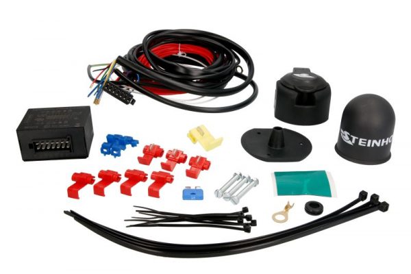 Komplektą sudaro laidai, kablio dangtelis, rozetė, tarpinės bei tvirtinimo varžtai su veržlėmis, 13PIN elektros instaliacijos modulis, sujungimo bei tvirtinimo elementai.