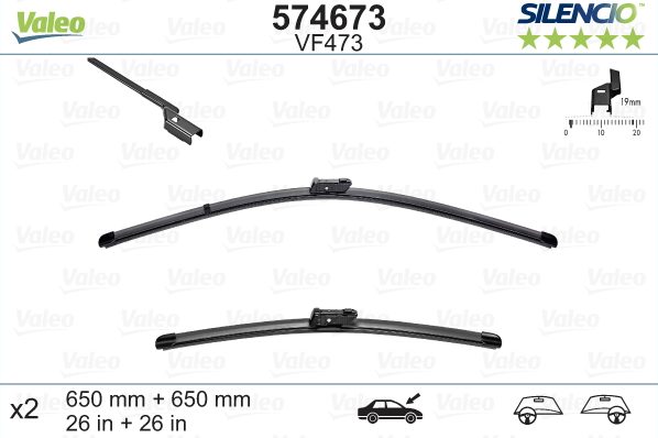Valeo Silencio VF473 berėmiai valytuvai. Kaina nurodyta už komplektą (2 vnt.)