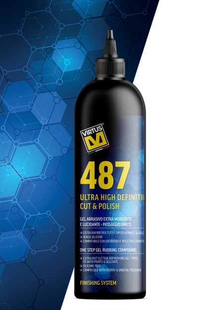 VIRTUS 487 CUT & POLISH – tai poliravimo pasta, skirta pašalinti vidutinius ir gilius defektus (P1200-1500) nuo dažytų ir gelcoat paviršių. Poliravimo pasta gali būti naudojama tiek su rotaciniais, tiek su orbitiniais poliruokliais. Pasta yra juodos spalvos.